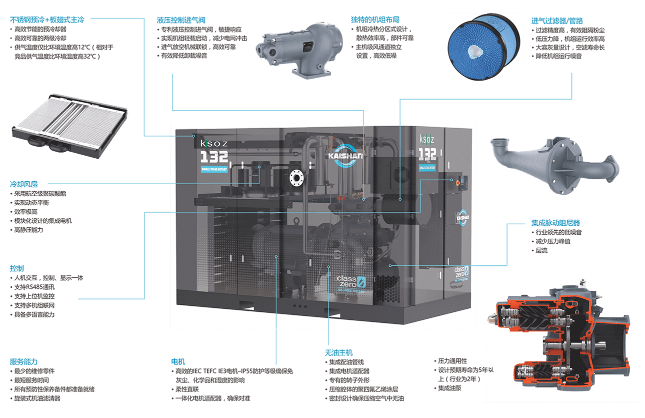开山干式无油螺杆空气压缩机,已取得Class 0认证